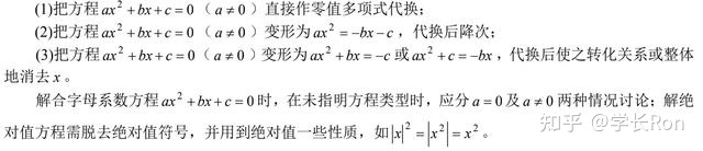 最后,我们来总结一下,一元二次方程的变形,主要就是下面的几种方式。另外,在没有说明是几次方程的时候,有绝对值的时候,需要分情况讨论、计算。