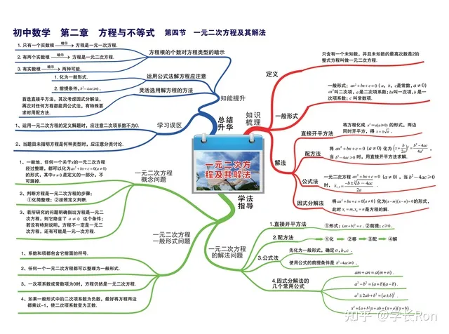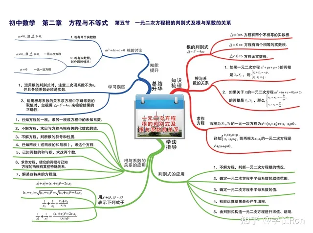 上面两张图,包括了初中阶段,一元二次方程、不等式的所有知识点,如果同学和孩子还有不知道的点,一定要从书本开始,把基础的部分打扎实。