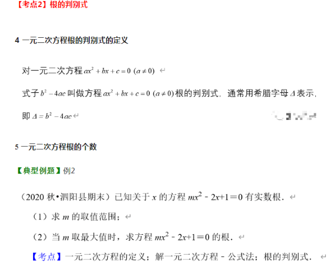 2023年初中数学一元二次方程高级考点二:根的判别式