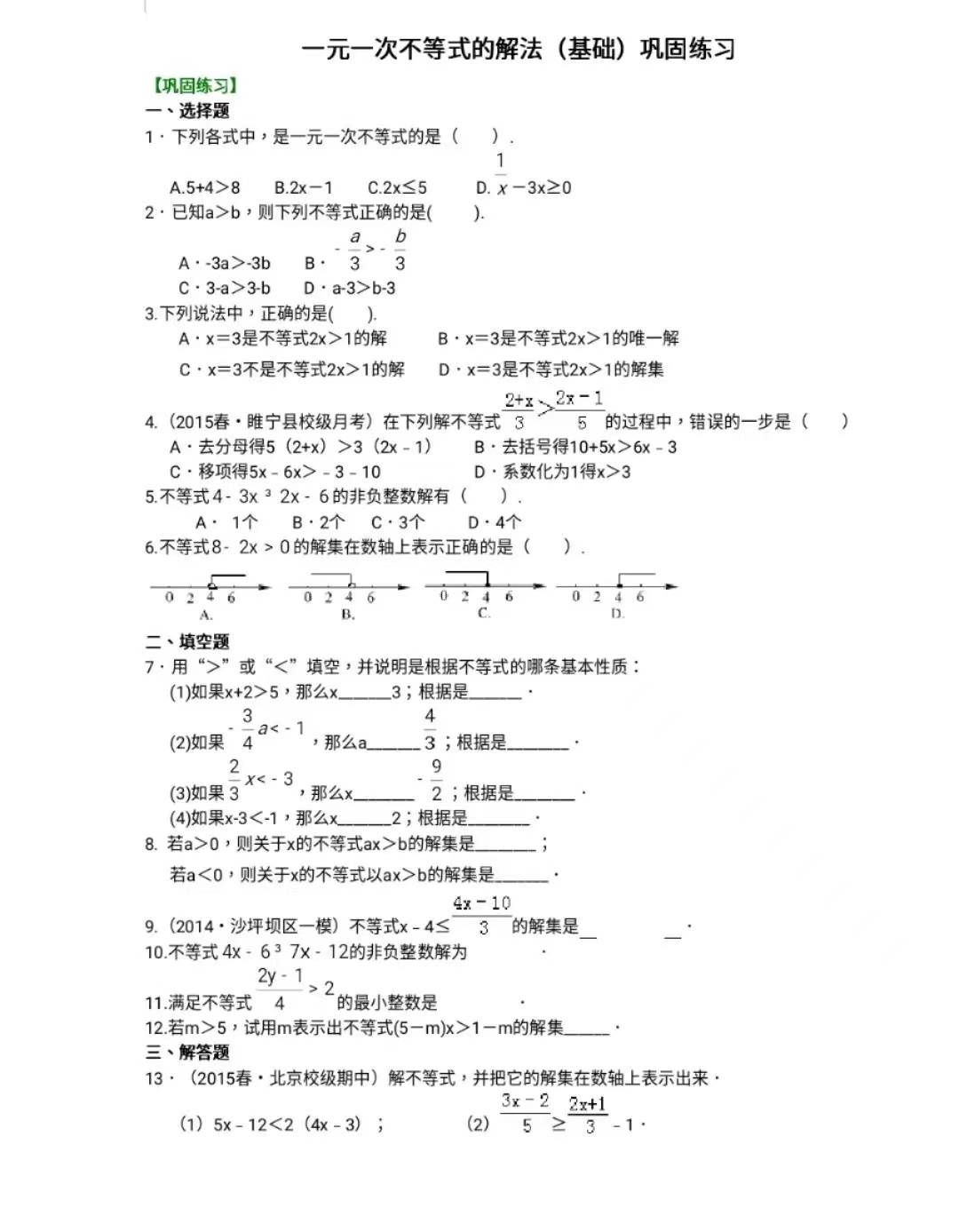熟悉了一元一次不等式的解法,做几道练习题巩固一下吧。