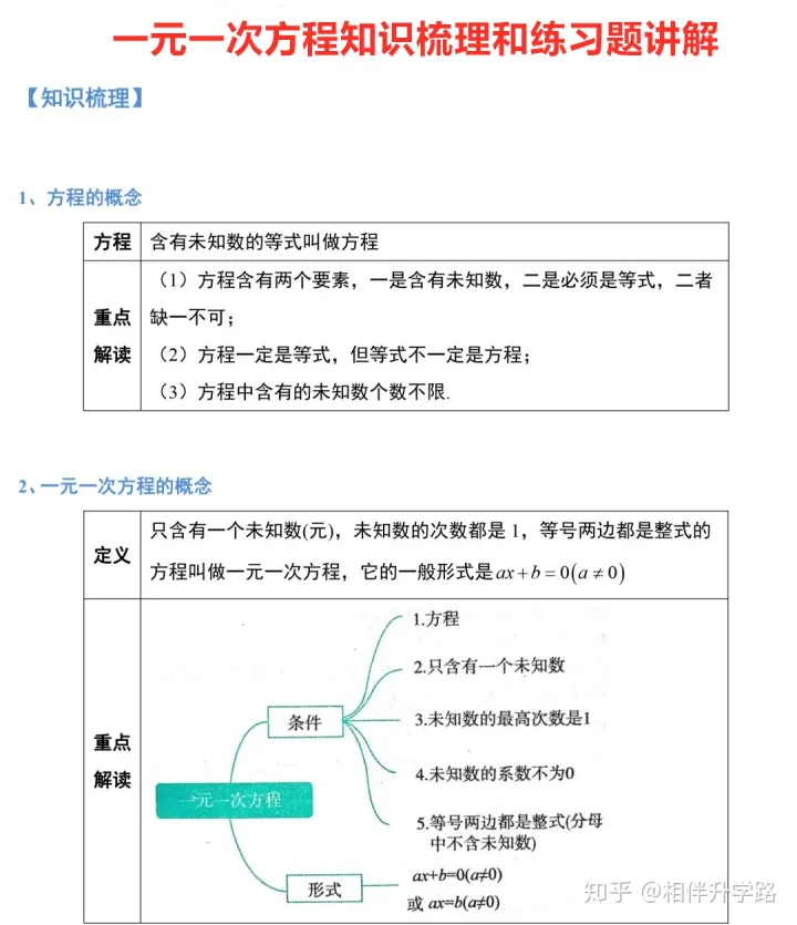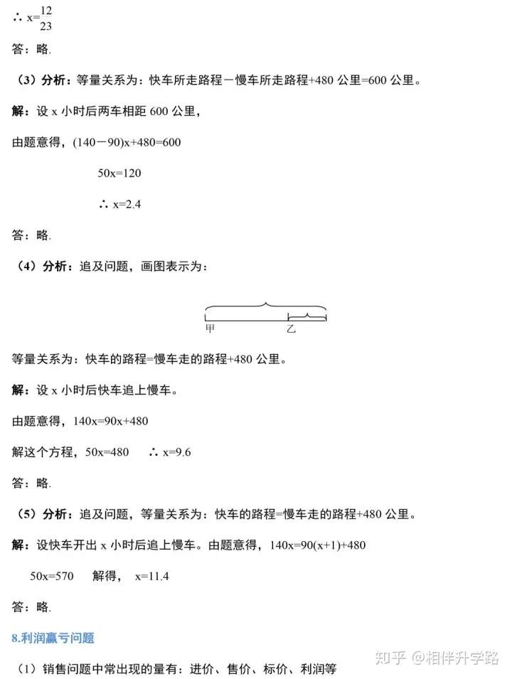 2023年初中数学一元一次方程知识梳理及应用题分析
