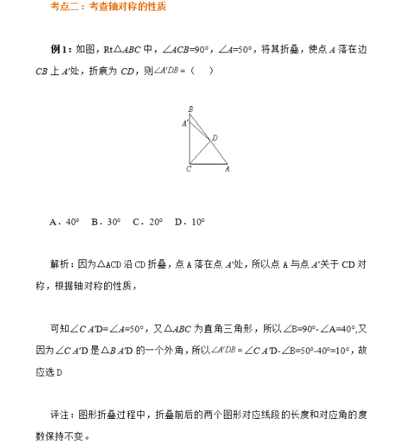 2023年初中数学轴对称常见考点:轴对称的性质