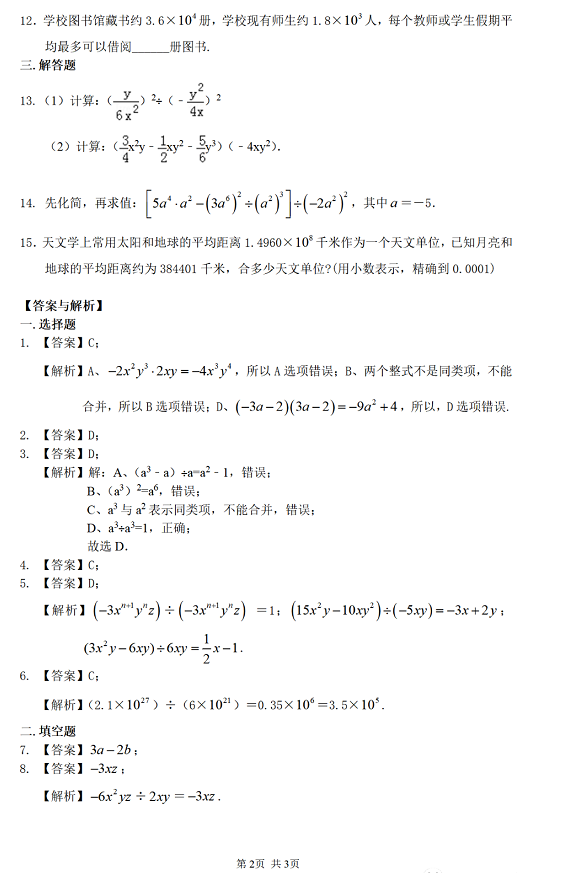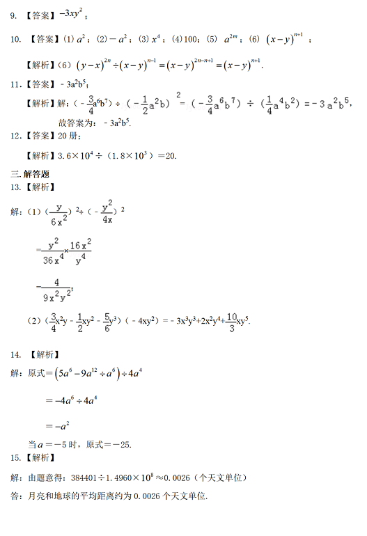 2023年初中数学:整式的除法巩固练习题