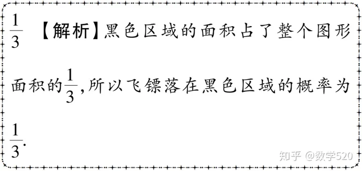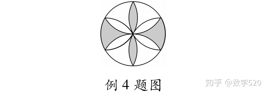 例4 如图所示的圆面图案是用相同半径的圆与圆弧构成的,若向圆面投掷飞镖,则飞镖落在黑色区域的概率为____.