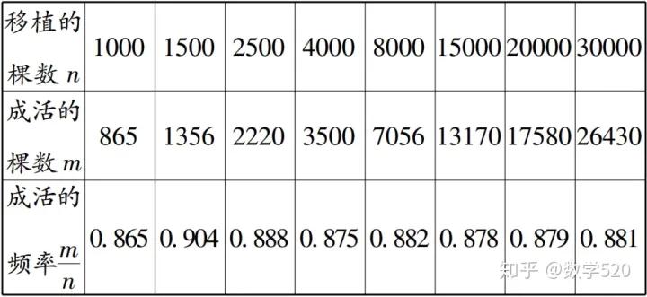 估计该种幼树在此条件下移植成活的概率为____.