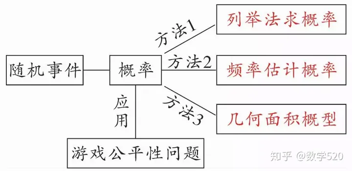 概率计算是全国中考的高频考点,三大题型都会考查,且在解答题中多数会涉及游戏公平性问题,下面我们聊聊一般情形下的概率计算方法(如下图所示):