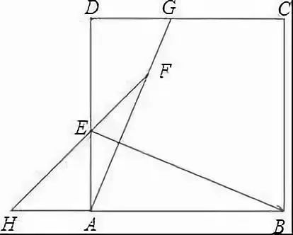 例3 如图,在边长为1的正方形ABCD中,E为AD边上一点,连接BE,将△ABE沿BE对折,A点恰好落在对角线BD上的点F处。延长AF,与CD边交于点G,延长FE,与BA的延长线交于点H,则下列说法:①△BFH为等腰直角三角形;②△ADF≌△FHA; ③∠DFG=60°;④DE=2-√2;⑤S△AEF=S△DFG.其中正确的说法有( )