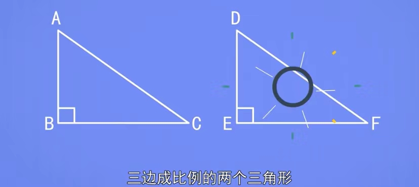 所谓的相似三角形,就是它们的形状相同,但大小不一样,然而只要其形状相同,不论大小怎样改变他们都相似,所以就叫做相似三角形.三角对应相等,三边对应成比例的两个三角形叫做相似三角形。