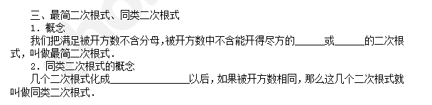 2023年初中数学知识点:最简二次根式、同类二次根式