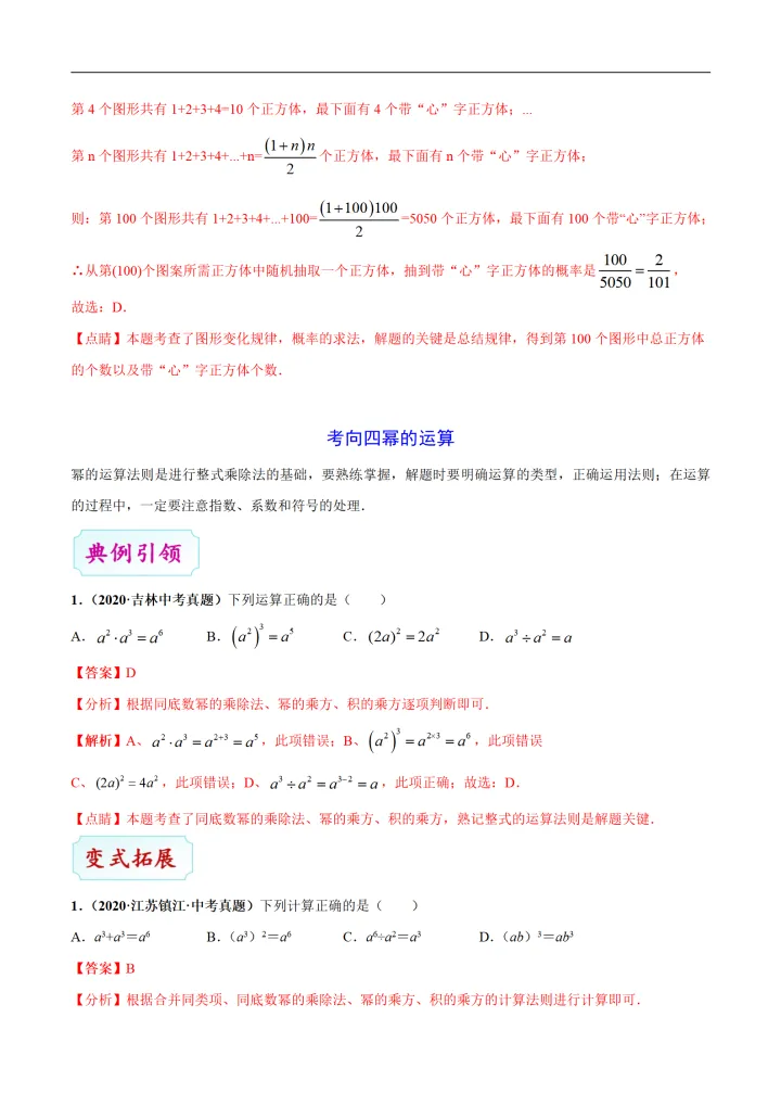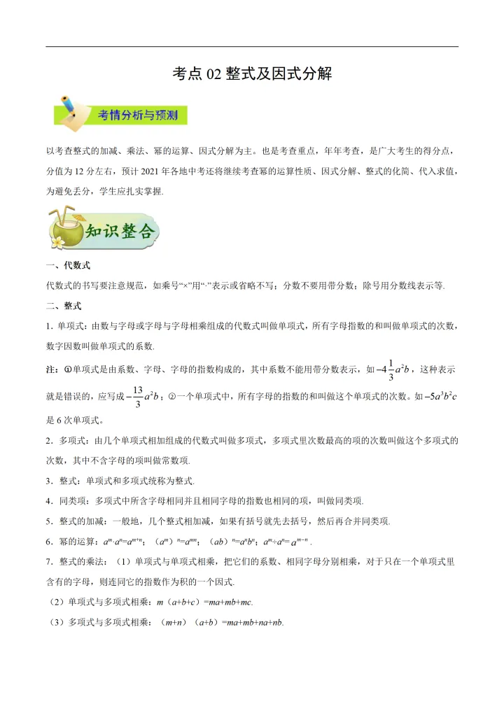 2023年初中数学整式与因式分解