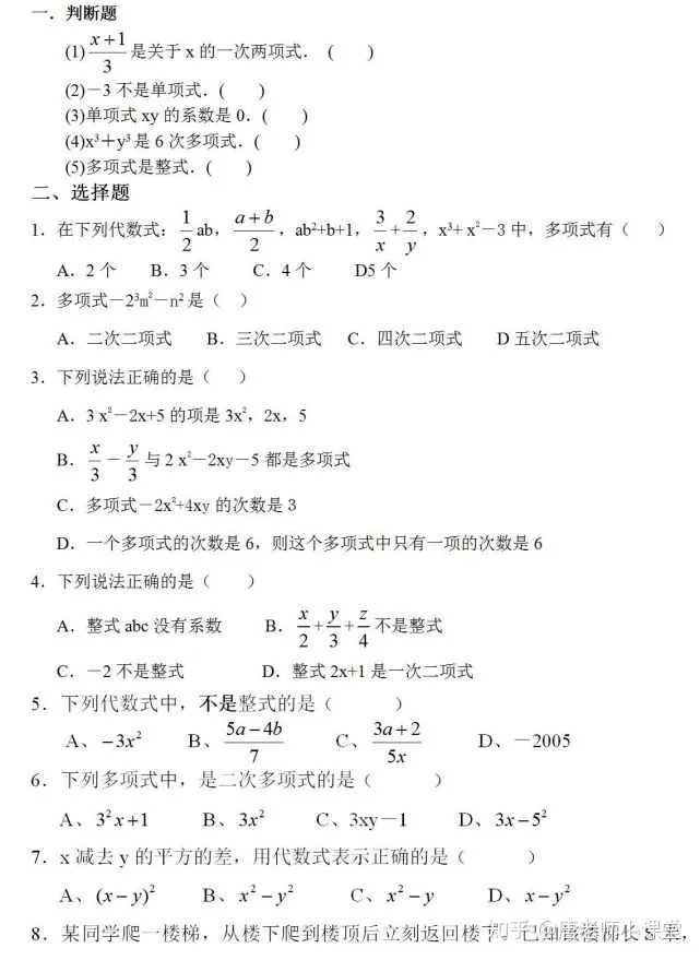第三,掌握单项式和多项式的特点以及各部分的名称,对于掌握整式这章节的内容来说起到了定性的作用。比如单项式中系数和次数的表达,次数是各个字母的指数之和。而在多项式当中要表达某多项式为几次几项式,其次数为多项,是东某个单项式次数的最高次,其项数则是该多项式当中所包含的单项式的个数。