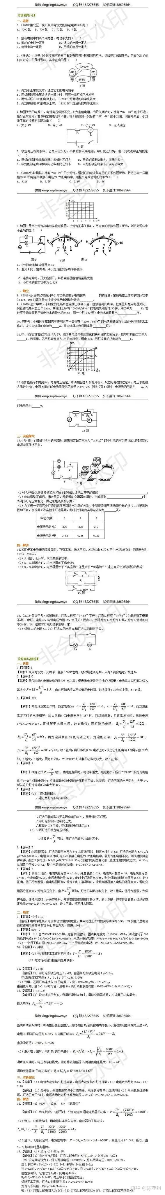 初中物理+电功率+巩固习题