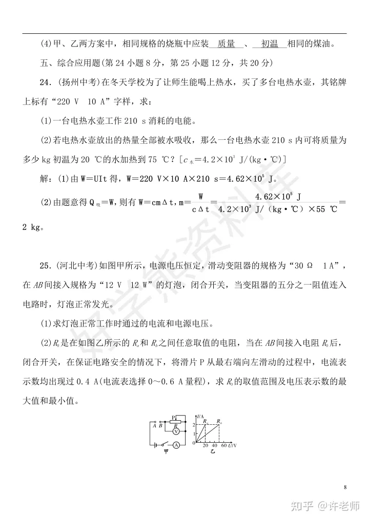 2023年初中物理电学之电功率