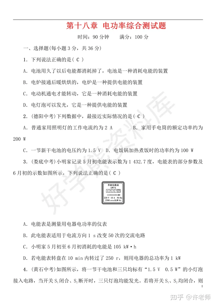 2023年初中物理电功率综合测试