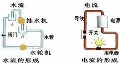 可以理解为:水在抽水机的推动下,携带着能量在左图系统中循环流动;电荷在电源的“推动”下,携带着能量在右图系统中循环流动。