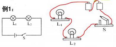 串联电路的连接方法:串联电路非常容易识别,先找电源正极,用铅笔尖沿电流方向顺序前进直到电源负极为止。