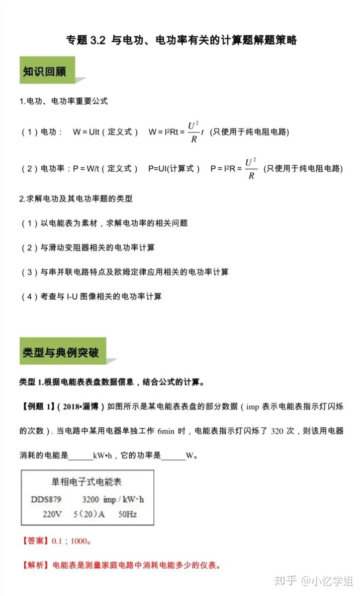 2023年初中物理+电能表和电功+知识点