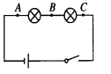如图所示,两个灯泡串联后接在电源两端, AB之 间、BC之间、AC之间的电压有什么关系?
