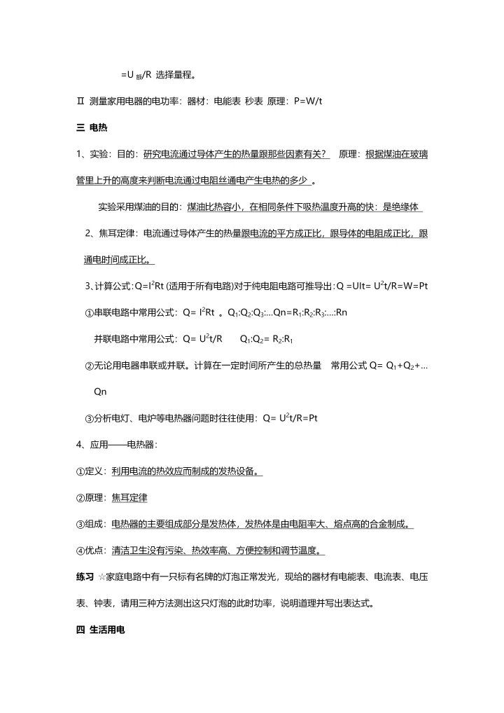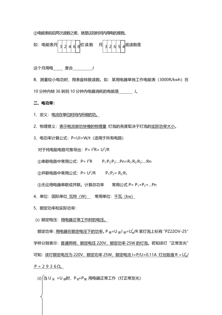 2023年初中物理电功率的相关知识点及其应用总结