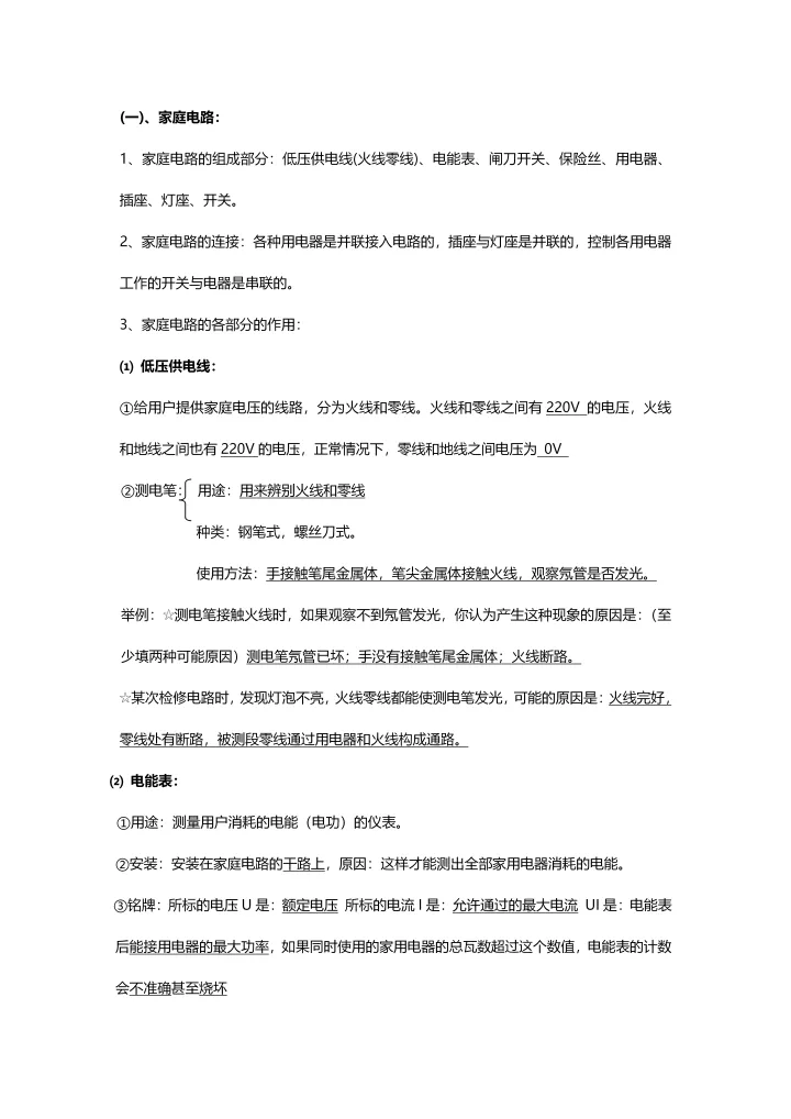 2023年初中物理电学知识点汇总