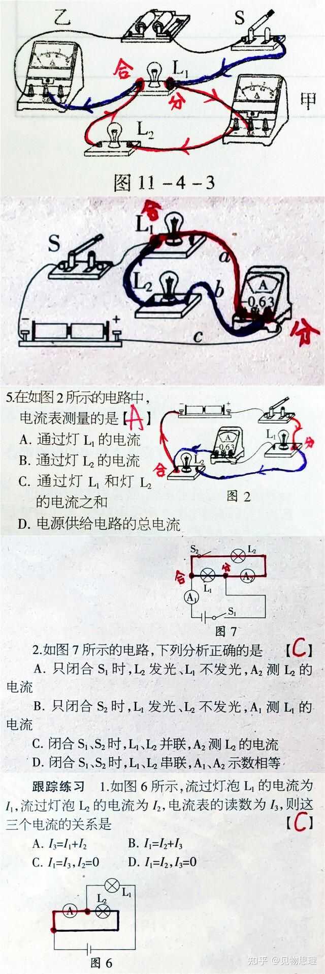 然后按照电流流向,分清电流的分点与合点,于是,在分点与合点之间的两条支路就一清二楚了,于是按照电流路径法,就能瞬间判断出来电流表所测元件!