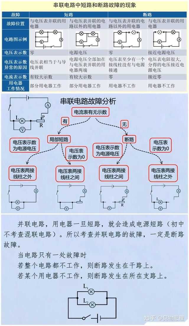 按照以下思路,我们可以发现,通过电流表有无示数,就可以判断出电路的故障种类;通过电压表有无示数,可以判断出电路的故障位置!