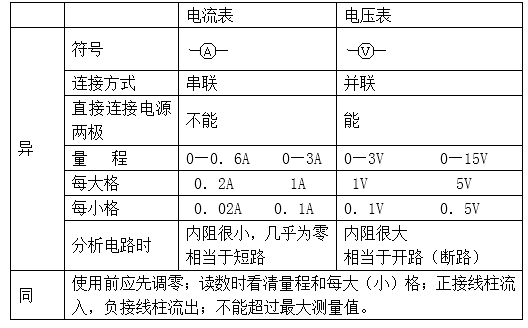 (四)电流表、电压表的比较
