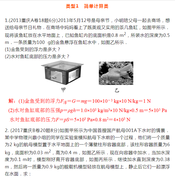 2023年初中物理浮力常见计算题解题思路一:简单计算类