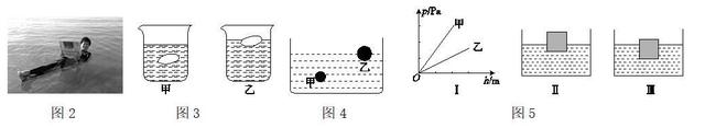 7.图5Ⅰ是甲、乙两种液体内部的压强与深度关系的图像,设甲液体的密度为ρ甲,乙液体的密度为ρ乙,把同一木块分别放入盛有甲、乙两种液体的容器中,则()