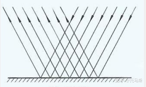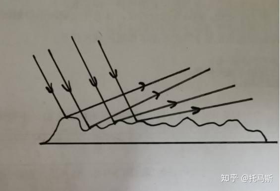 漫反射经常发生在比较粗糙的界面上,它是指平行光射入界面之后,在界面发生反射,反射光线不是平行的。