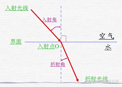 (1)折射光线与入射光线、法线在同一平面上,折射光线和入射光线分居法线两侧。