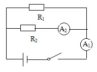 例:如图所示的电路中,电阻R1的阻值是10Ω,闭合开关S,电流表A1的示数为2A,电流表A2的示数为0.8A,则电阻R2的阻值为______。