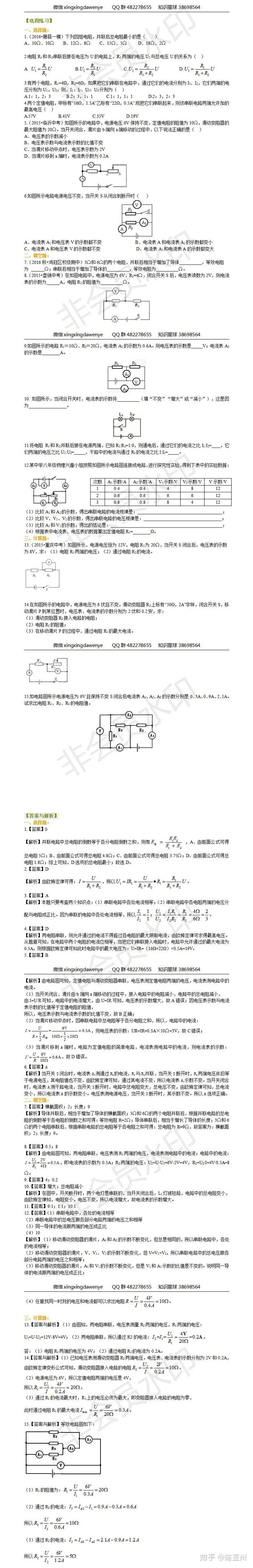 初中物理+欧姆定律在串、并联电路中的应用+巩固习题