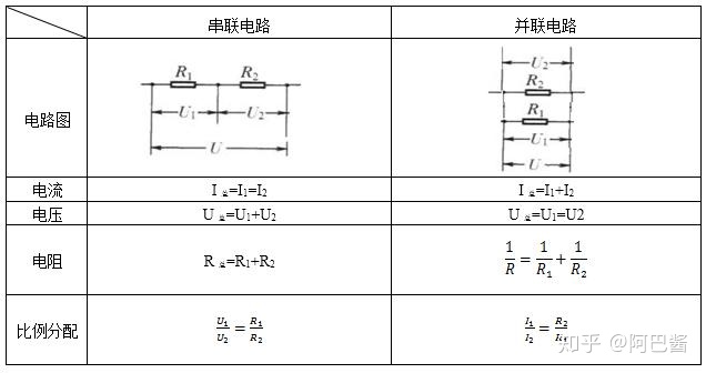 n个阻值相同的电阻并联,其总电阻为R=R0/n把n个电阻并联起来,相当于增加了导体的横截面积,其总电阻比每一个导体的都要小。4、串、并联中电压电流的分配特点