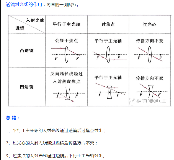 2023年初中物理透镜的三条特殊光线