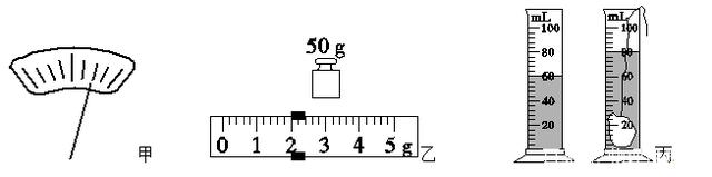 (3)用调节好的天平称量小矿石的质量,天平平衡时,右盘中砝码的质量和游码的位置如图乙所示,用量筒测量小矿石的体积如图丙所示,由此可以算出小矿石的密度为ρ=________g/cm3。