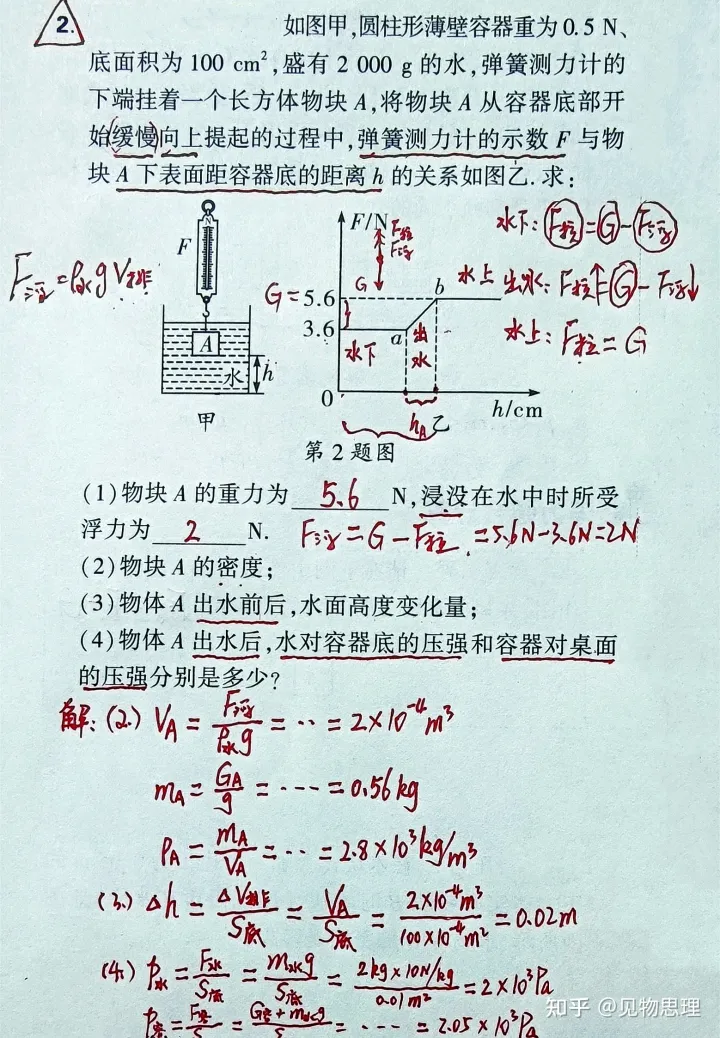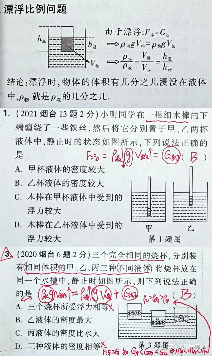 2.分别列出计算浮力的相关等式,然后将各等式联立求解相关的物理量。