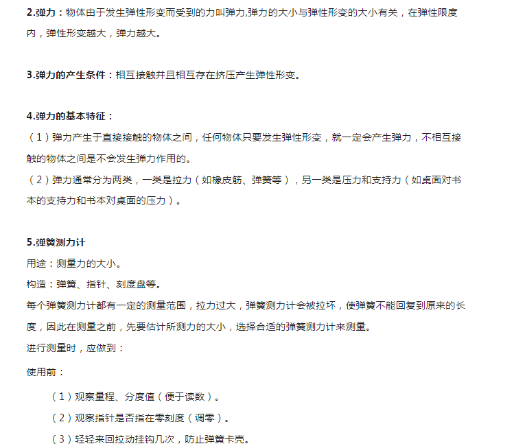 2023年初中物理:中考力学常考知识点:弹力