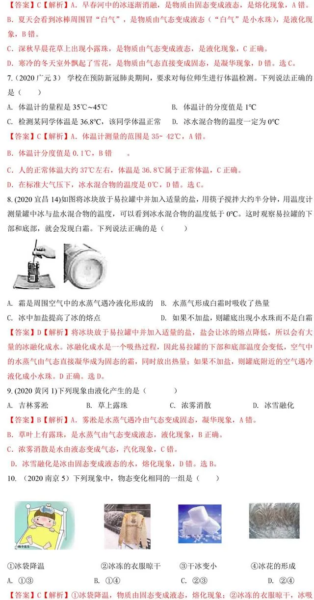 固态→液态(吸热) 凝固:液态→固态(放热)汽化:液态→气态(吸热) 液化:气态→液态(放热) 升华:固态→气态(吸热) 凝华:气态→固态(放热)