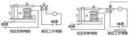 电磁继电器由电磁铁、衔铁、弹簧、动触点和静触点组成,其工作电路由低压控制电路和高压工作电路组成。
