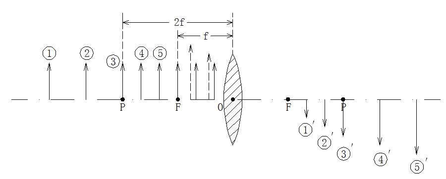 ①两个分界点:一倍焦距分虚实,二倍焦距分大小。