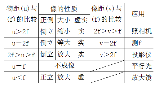 ③成实像时:u>v成的是缩小的像,u=v成等大的像,u
