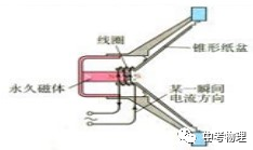 由于通过线圈的电流是交变电流,它的方向不断变化,线圈就不断地来回振动,带动纸盆也来回振动,于是扬声器就发出了声音。