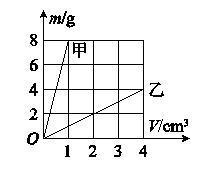 4.如图所示是甲、乙两种物质的质量和体积的关系图像,若用质量相等的甲、乙两种物质分别制成等高的实心圆柱体A、B,把它们并排竖放在水平地面上,则两圆柱体A、B对水平地面的压强之比是()