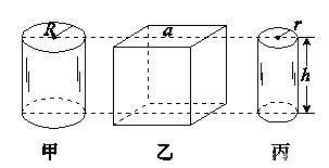 5.如图所示,在水平桌面上竖立着三个柱状物甲、乙、丙,均为实心匀质,它们的高度均为h,甲、乙、丙的底面分别是半径为R的圆面、边长为a的正方形、半径为r的圆面。已知:2R>a>2r,它们对桌面的压强p甲=p乙=p丙,则甲、乙、丙材料的密度比较,正确的是()