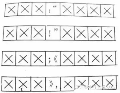 1.句号、冒号、分号、逗号、顿号的书写位置如下图: