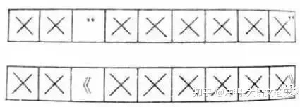 书名号前一半写在格子的右半格,后一半写在格子的左半格,两部分各占一格。括号的写法与此相同。