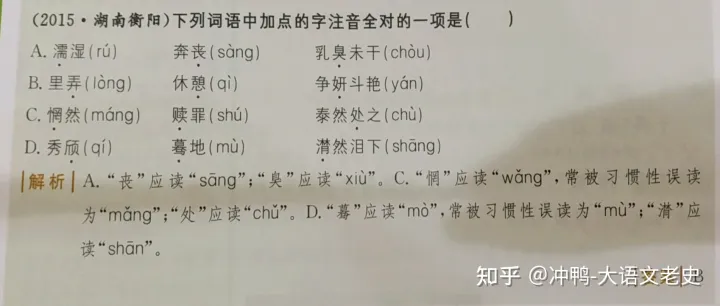 如∶"日月如梭"的"梭"与"怙恶不悛"的"悛",二者形体相近,但是着眼其部首,前者从"木",后者从"心",前者读"suō",后者读"quān"。