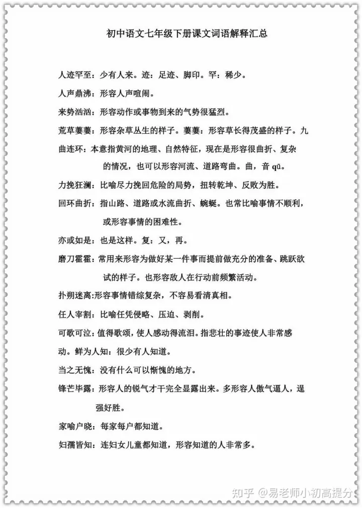 2023年初中语文七下词语解释