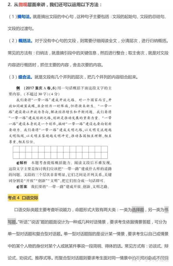 此类题是语言运用考查的重点,也是学生复习时的一个难点。主要考查考生思维的条理性、语言表达的连贯性,以及考生的阅读理解能力、语言组织能力和思维判断能力。